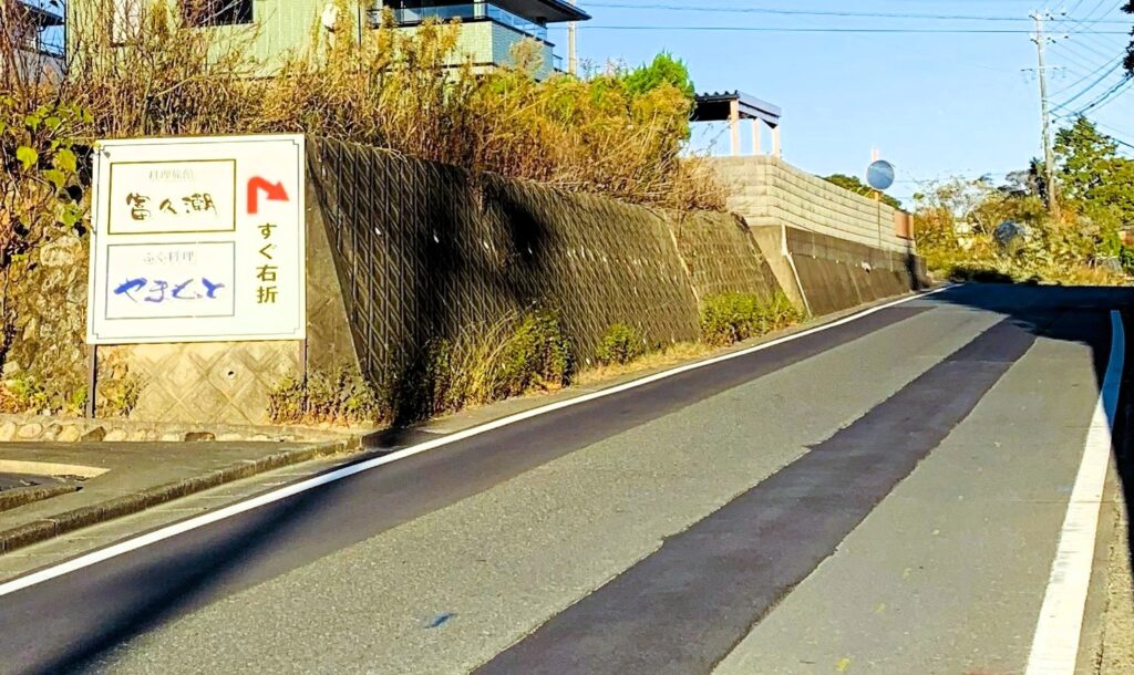 【冨久潮】【やまもと】 の看板を過ぎたら鋭角に右折