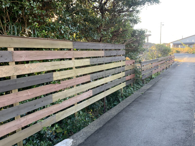 この木の塀を過ぎたらUターンです。